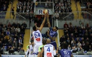 La Chorale retrouve son adresse à 3 points et se détache, mais nos joueurs ne lâchent rien et sur un dunk de Yannis Morin à 1 minute du terme, le score est de parité (72-72).
